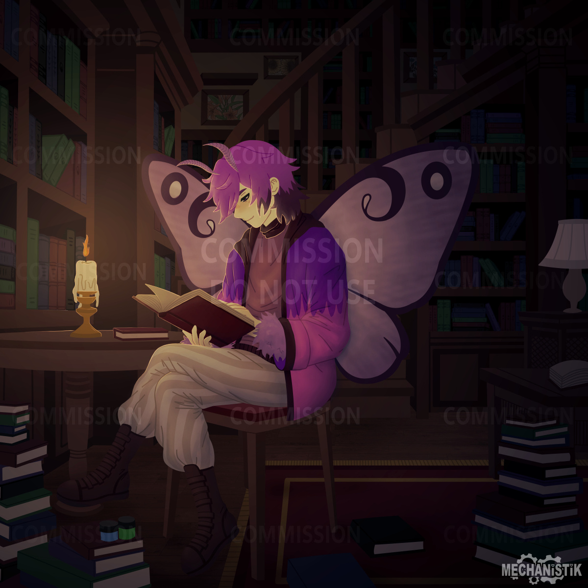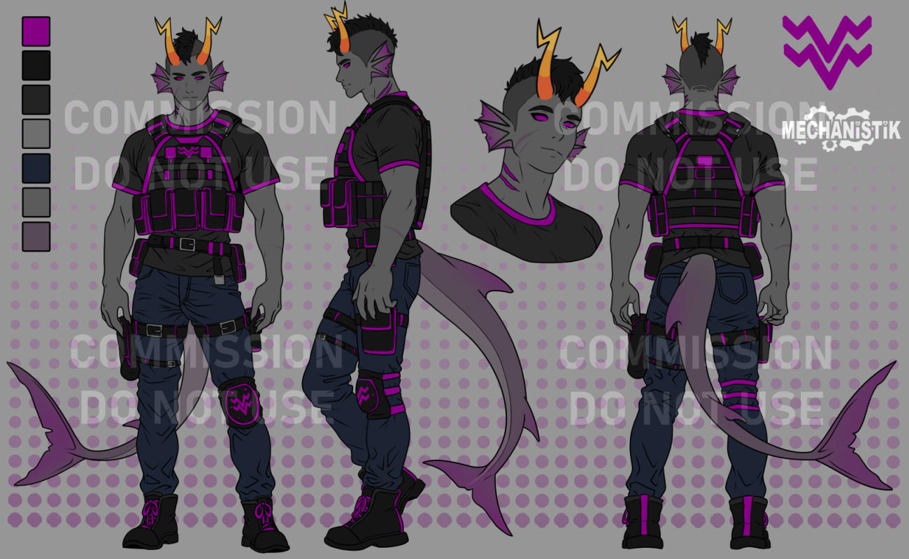 I have the right to reject a commission for ANY reason.Payment will be through paypal, in USD, unless paying through VGen or Ko-Fi.Payment will be all upfront. Sketches will not be started until payment is received. No refunds after the sketch is delivered. Changes to the sketch or finished version are accepted, up to three batches of changes are allowed for the sketch, and one batch for the finished product. This means you should ask me to change multiple things at once. Each time I make changes, that is one 'batch' of changes. If you wish for me to make a change on something you have previously approved, there will be an extra fee.Usually commissions will be delivered within a week, but I reserve up to a month to deliver, in case of any real life circumstances that might come up. If there is anything that comes up that might slow the delivery of your piece, I will let you know ASAP.The final piece will be delivered in full resolution, as well as a more web friendly size via a .zip file by google drive link.CUSTOMER PROTECTION: If you do not have the full piece you ordered delivered to you within three months, you are entitled to a full refund, regardless of if you have had sketches previously delivered to you or not.Your commission is for personal use only. You may repost, print or reproduce on items (stickers etc) for personal use with credit given. You may not use your commission for any monetary purposes or post cropped versions without credit. You may not hire another artist to make changes to your commissions without written permission. Commercial rights may be acquired for an additional fee, but must be discussed, quoted and agreed upon before work begins. I retain rights to your commission for the purpose of self-promotion (I.E. using it as a commission example) unless you explicitly ask me not to.Any artwork by me is NOT to be used in relation with generative AI in ANY capacity. It may not be used to train AI programs, reproduced, altered, or used in conjunction with AI content. Anyone found to be using any of my work in conjunction with AI will be given a permanent blacklist from any future dealings with me.Any type of piece you want that isn't listed with a price, you can contact me and ask about.For any commission questions you can contact me through the following means:Twitter: mechanistik (i don't recommend twitter, it doesn't show dms frequently)