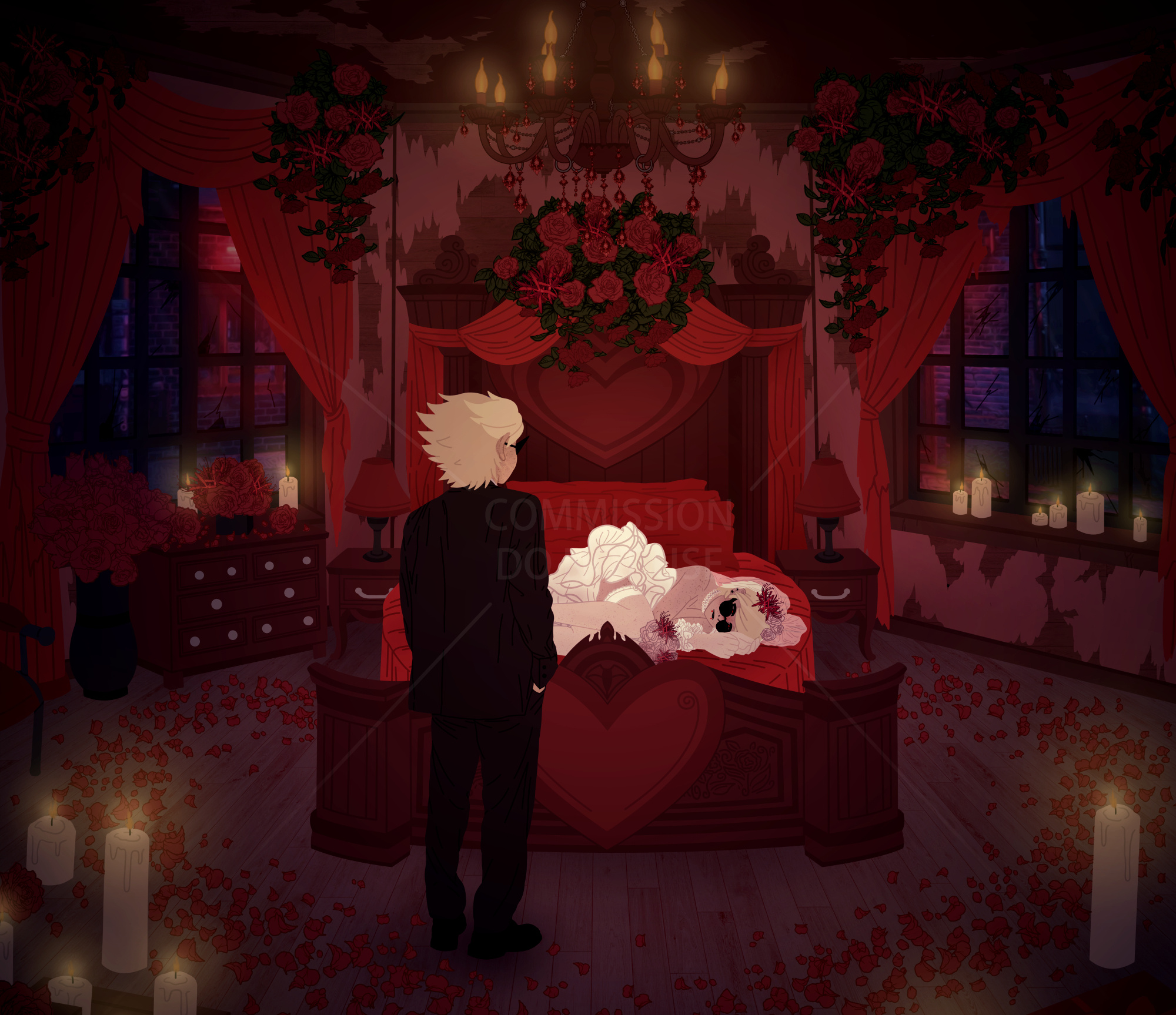 for the B&W pencil sketch style it's $50 USD for two characters, minimal to no background.