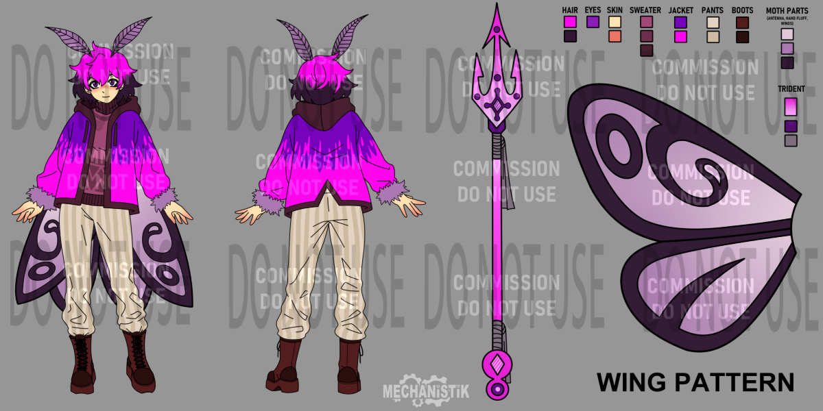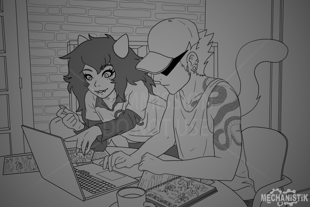 I have the right to reject a commission for ANY reason.Payment will be through paypal, in USD, unless paying through VGen or Ko-Fi.Payment will be all upfront. Sketches will not be started until payment is received. No refunds after the sketch is delivered. Changes to the sketch or finished version are accepted, up to three batches of changes are allowed for the sketch, and one batch for the finished product. This means you should ask me to change multiple things at once. Each time I make changes, that is one 'batch' of changes. If you wish for me to make a change on something you have previously approved, there will be an extra fee.Usually commissions will be delivered within a week, but I reserve up to a month to deliver, in case of any real life circumstances that might come up. If there is anything that comes up that might slow the delivery of your piece, I will let you know ASAP.The final piece will be delivered in full resolution, as well as a more web friendly size via a .zip file by google drive link.CUSTOMER PROTECTION: If you do not have the full piece you ordered delivered to you within three months, you are entitled to a full refund, regardless of if you have had sketches previously delivered to you or not.Your commission is for personal use only. You may repost, print or reproduce on items (stickers etc) for personal use with credit given. You may not use your commission for any monetary purposes or post cropped versions without credit. You may not hire another artist to make changes to your commissions without written permission. Commercial rights may be acquired for an additional fee, but must be discussed, quoted and agreed upon before work begins. I retain rights to your commission for the purpose of self-promotion (I.E. using it as a commission example) unless you explicitly ask me not to.Any artwork by me is NOT to be used in relation with generative AI in ANY capacity. It may not be used to train AI programs, reproduced, altered, or used in conjunction with AI content. Anyone found to be using any of my work in conjunction with AI will be given a permanent blacklist from any future dealings with me.Any type of piece you want that isn't listed with a price, you can contact me and ask about.For any commission questions you can contact me through the following means:Twitter: mechanistik (i don't recommend twitter, it doesn't show dms frequently)